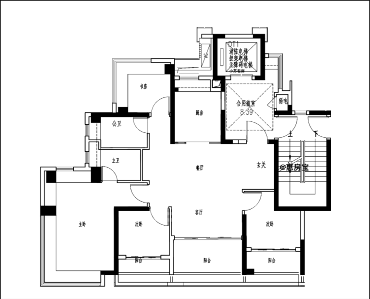 一梯一户,独立电梯厅,四开间朝南,LDKB一体化设计,南北直通,厨房附赠飘窗,客厅面宽约3.8米,南向三阳台;