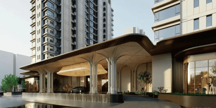 · 建筑与美学:融贯东方审美与现代简约的立面美学,立面采用精致铝线条(局部涂料)与现代质感玻璃打造,勾勒优雅轻盈的城市封面