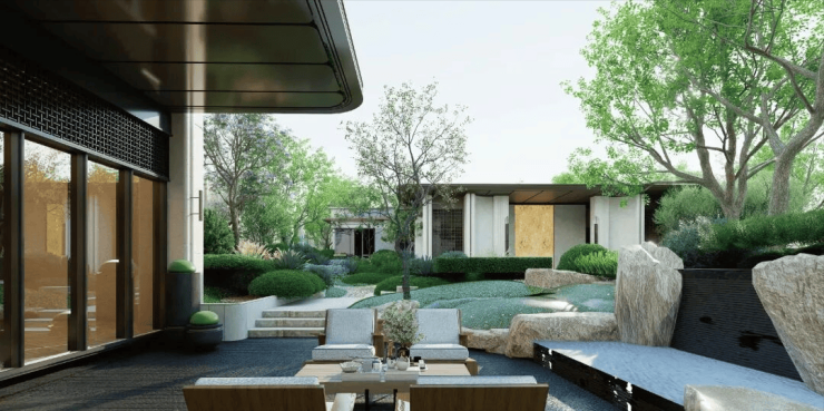 · 沉浸式园林:规划“三轴一界一带”,融入玉兰花图腾、海派细节与荷花池等画景,营造可游可赏的森境家园。