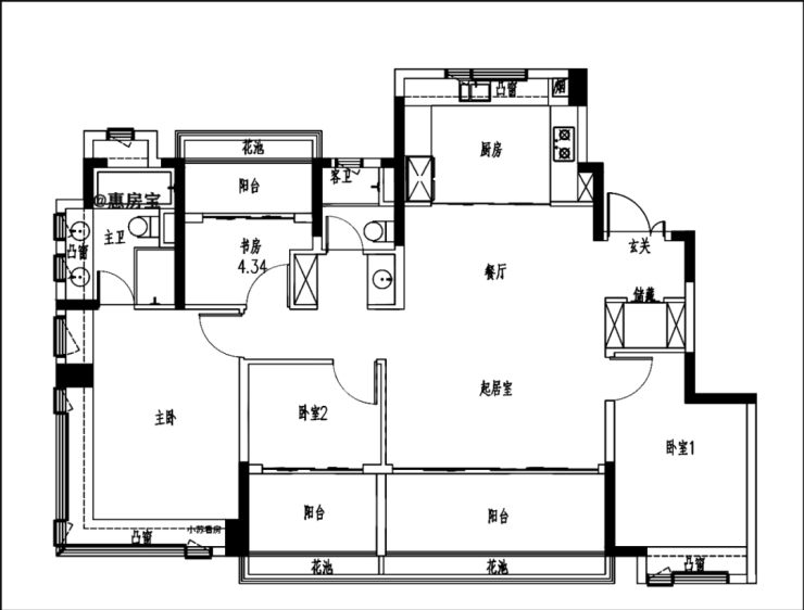 主卧套房为270°转角飘窗!