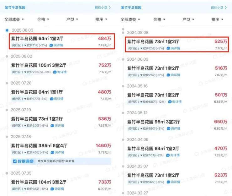 紫竹半岛,从今年7、8月成交记录来看,最新成交单价达到了7.49万/㎡,成交量&成交单价相较于去年同期都有了明显增长,且议价空间从去年的12%减少到了今年的2-3%!