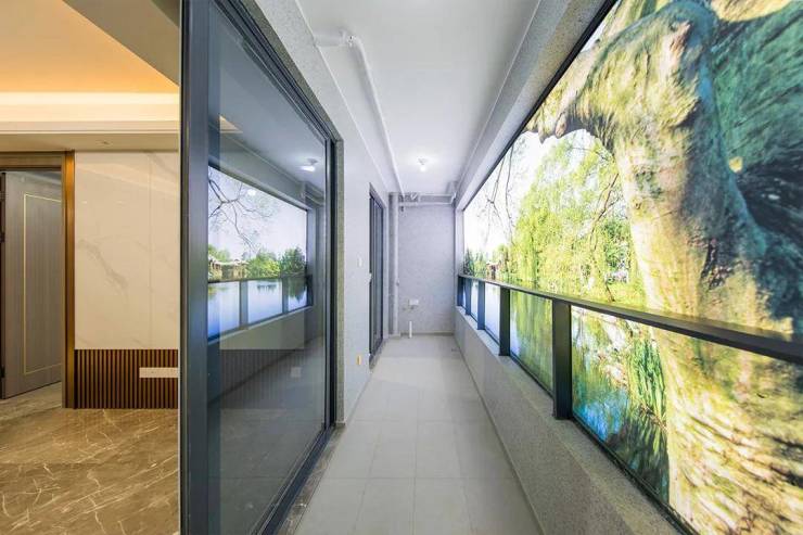 不仅如此,为与室外生态院落呼应,湖湾洋房均设计有客厅和卧室的连体阳台,尺度宽阔,除了洗晒之外,还可以放画架、跑步机、瑜伽垫等等,一个多功能情致空间,伴着鸟鸣与涛声,就呈献给了有趣的生活家们。