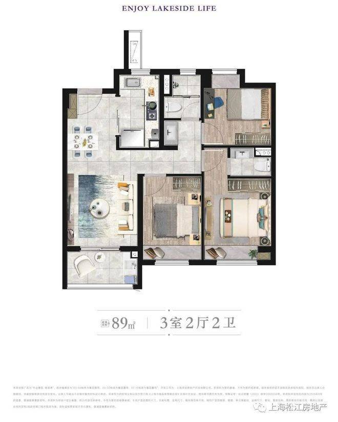 建筑面积约89㎡三房,总价448万起