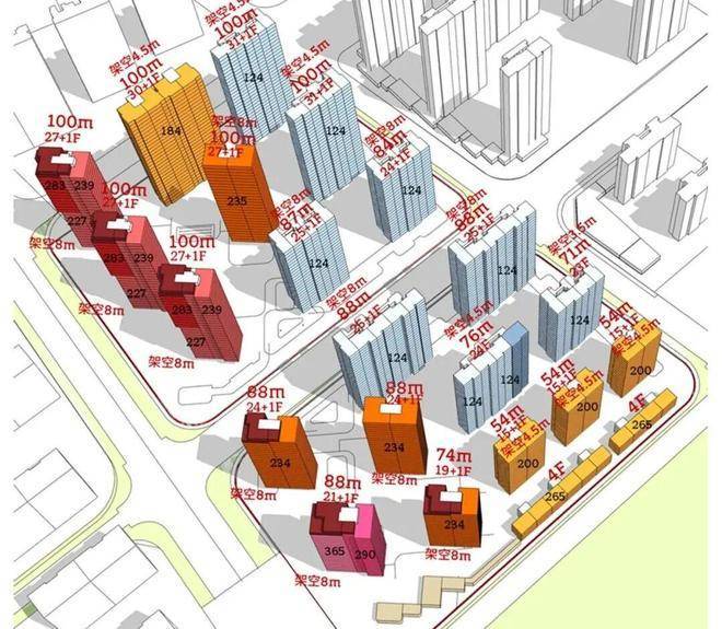 根据项目规划设计方案,07-01地块拟建9幢25-32F的高层住宅、若干社区配套用房以及部分商业设施,共计规划约794户。;全部楼栋均采用一层架空设计;