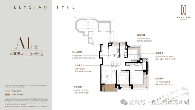 其中,建面约106㎡户型主卧飘窗为约270°转角飘窗!