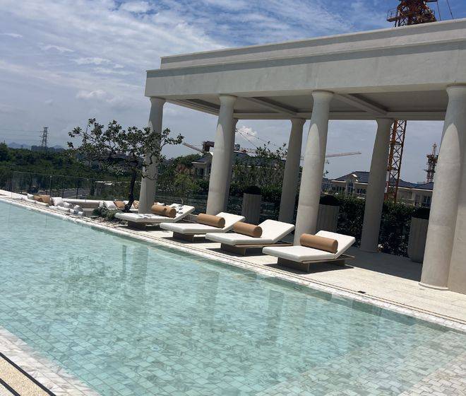 项目以香奈儿老佛爷摩洛哥南法海岛别墅为灵感,从1996年杭州九溪玫瑰园的传统宫廷法式到如今的浪漫法式,集萃27载绿城法式营造经验,再一次迭代产品精进。