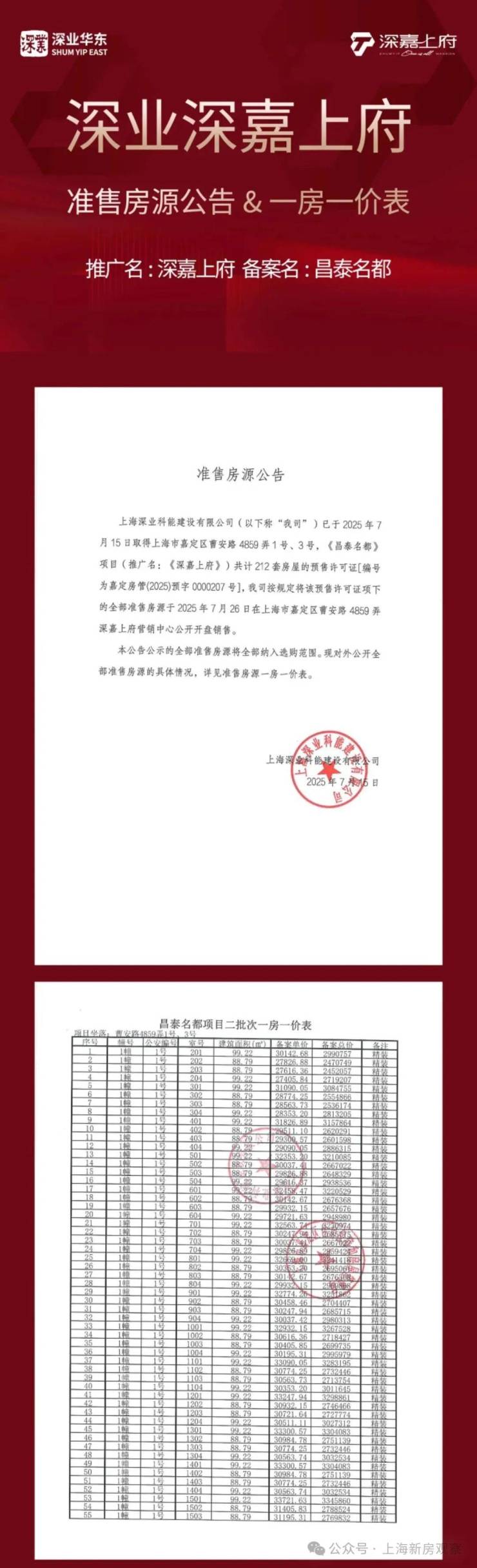 嘉定芯 同济旁,片区内综合体「深嘉上府」正式开放示范区&样板间;国企钜制+全屋精装;加推212套建面约68-99 ㎡1-3房;总价约300万起!均价35839元/㎡认购金5万;认购时间:7月17日-7月21日,售楼处线上火热预约中!