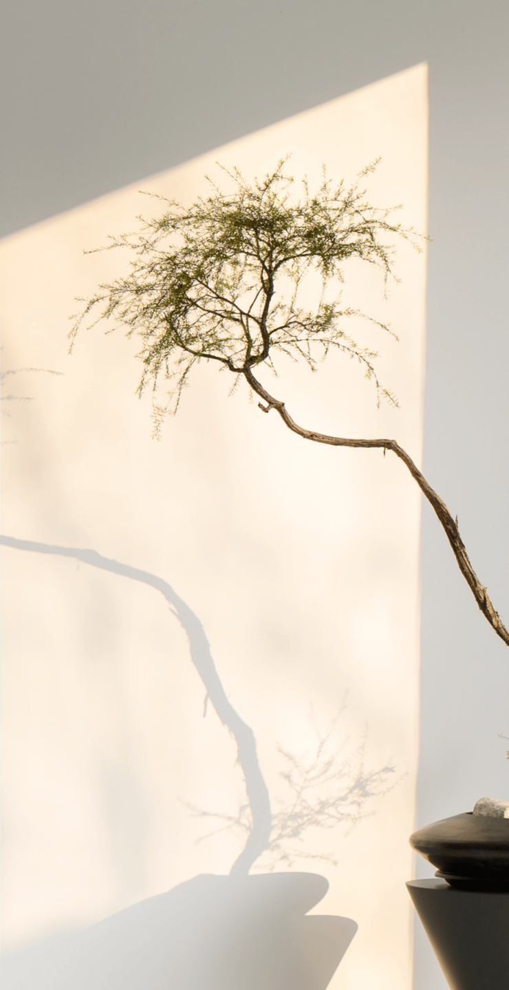 器物、枝叶缔造了虚实相生的意境,在墙面上留下了唯美的“倩影”,进而丰富了空间内在。