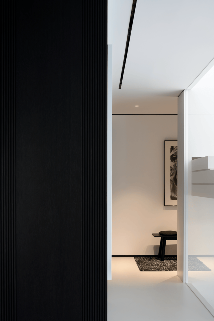 楼梯选用了纯白色,光是唯一的装饰品,在寻常中展现着空间最为纯粹的美。