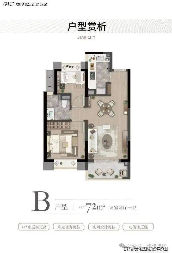B户型 建面约72㎡两室两厅一卫▼虹桥灿耀星城售楼处电话:400-9688-923✔✔│虹桥灿耀星城官方售楼处地址发布:上海青浦虹桥灿耀星城官方售楼处电话400-9688-923
