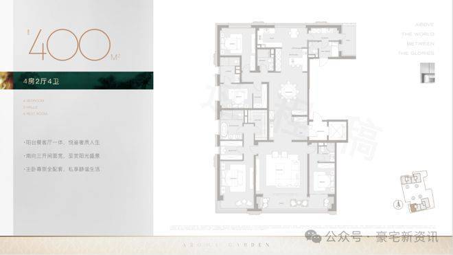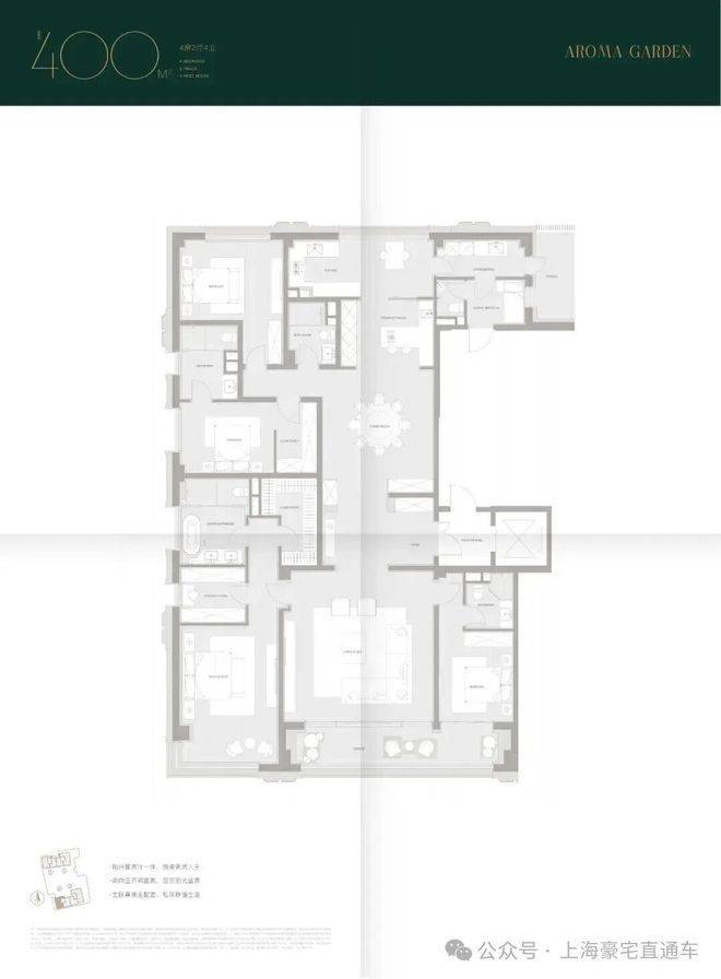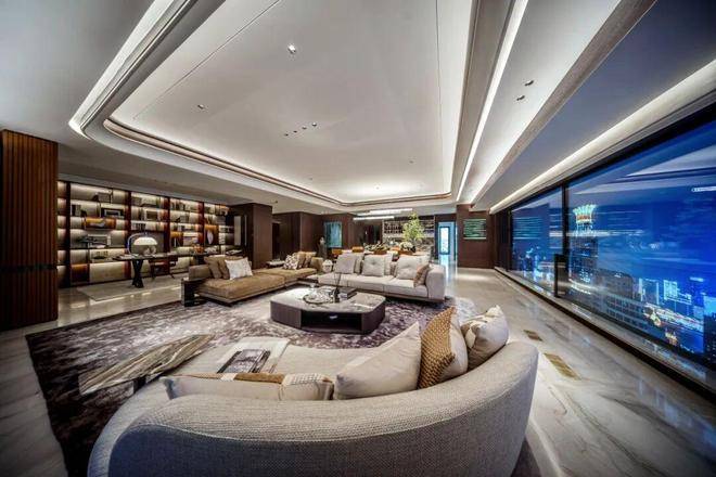 - **产品奢阔**:主力户型为约286-491㎡四至五房,采用“全套房设计”,层高约4.5米,配备独立电梯厅与双开门玄关。部分户型拥有约26米超大面宽,270°落地窗直面城市盛景,LDK一体化设计与中西双厨配置,满足顶级商务接待与家族聚会需求。