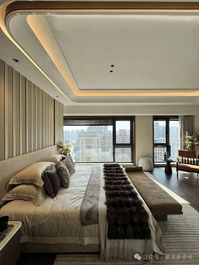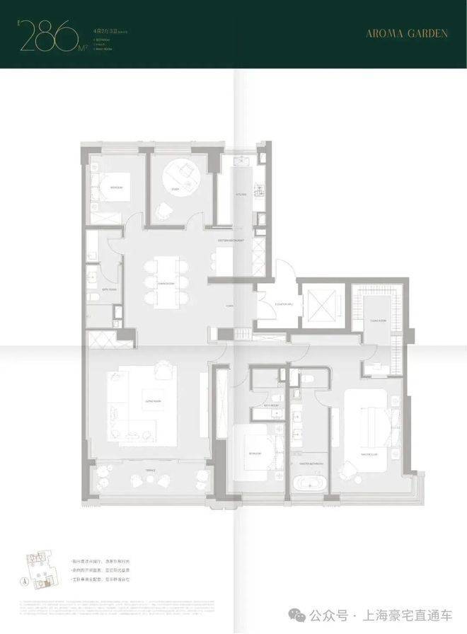 建面约489㎡,四个大套房,主卧甚至”小家化“了,还带书房,270°转角飘窗多一面观景享受。整个户型大面宽、窄进深,配上连通式大阳台,采光非常好。▶建面约491㎡不是「以房筛人」,而是「以人定房」