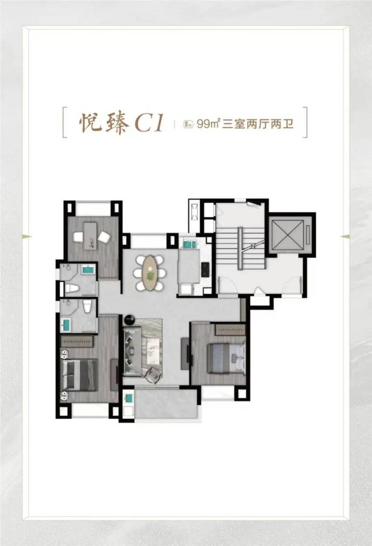 项目打造新中式立面风格,别墅1-3层、洋房1-2层采用来自巴西的维多利亚白天然石材干挂,营造高级、大气的建筑气质。