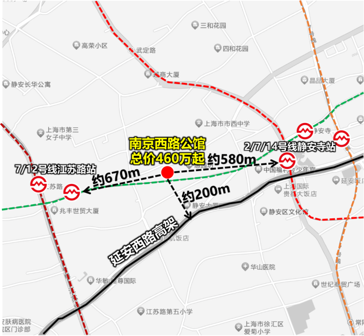 3、共享南京西路顶级商务、奢饰精品商业、出门延安高架、地铁2号线、7号线、11号线静安寺,江苏路站步行500米;