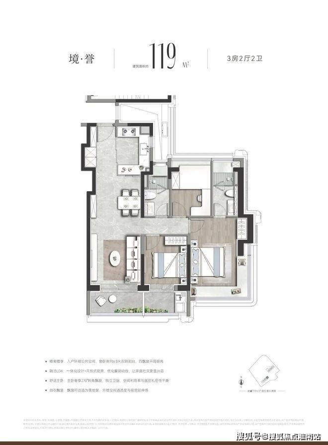 建面约112–119㎡ 精装大三房