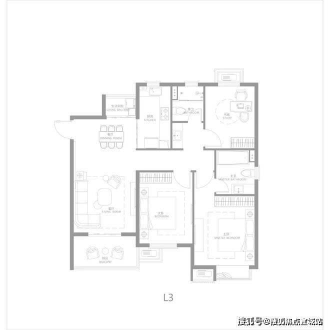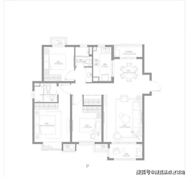 建面约116㎡三房两厅两卫,南北通透,户型方正,主卧大套房,带阳台与独立主卫,更舒适的居住尺度.