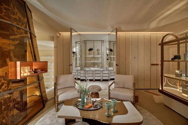 在这里,男女主人可尊享各自独立的沙龙空间,也分别配有珍宝阁和休闲区,可展示自身的爱好与收藏,可与好友相约小聚下午茶,也可享受独酌。这无疑是家中可唤醒感官的角落,让自身的品格与态度得以安放,让家空间与居者,相互滋养,相互成就。