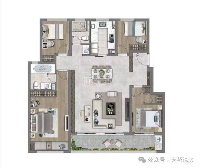 约120㎡的户型,约23㎡主卧套房沉稳大气,独立卫浴起居更从容,搭配仪式感漫漫的衣帽间,顷刻化身独家秀场,重塑精致生活尺度。