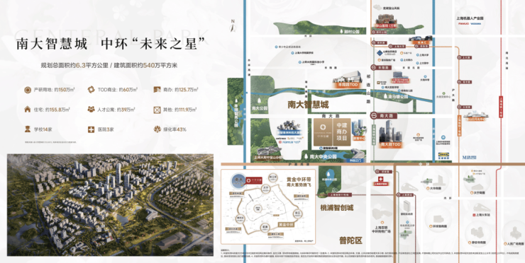 总结下来:中环铂樾的黄金半径内,拥有刷新城市天际线的地标建筑集群,汇聚国际科创精英构建的高智圈层,双轨TOD繁华,千亩生态绿肺南大公园,15号线&7号线黄金动线,名校环伺,是对标陆家嘴、对话前滩滨江级别的开发区域。