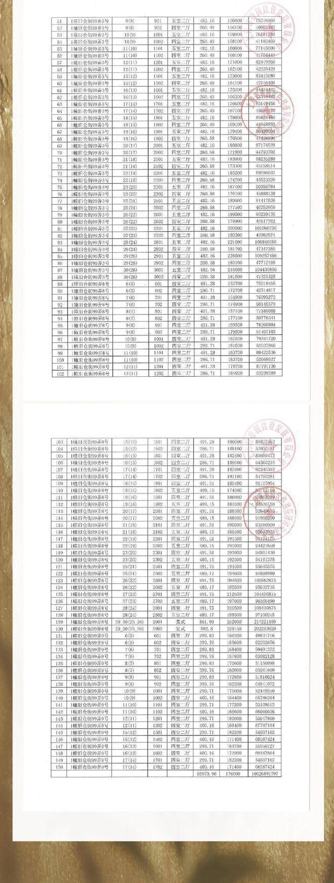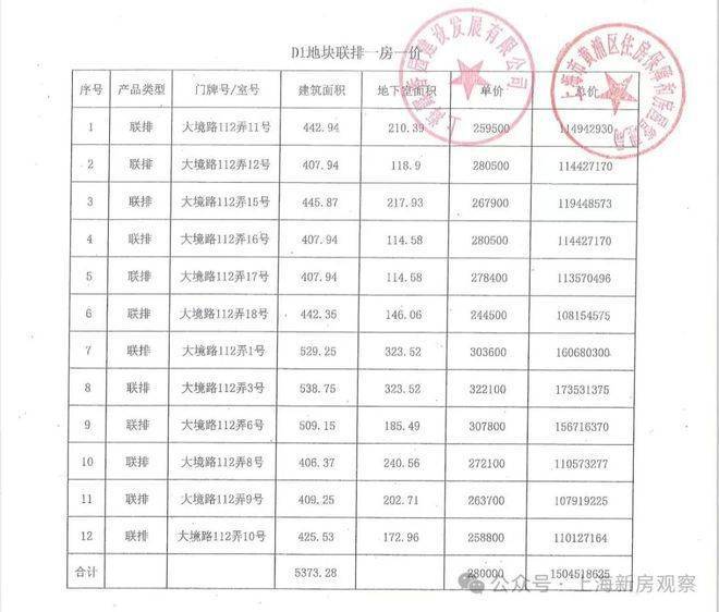一房一价表如下