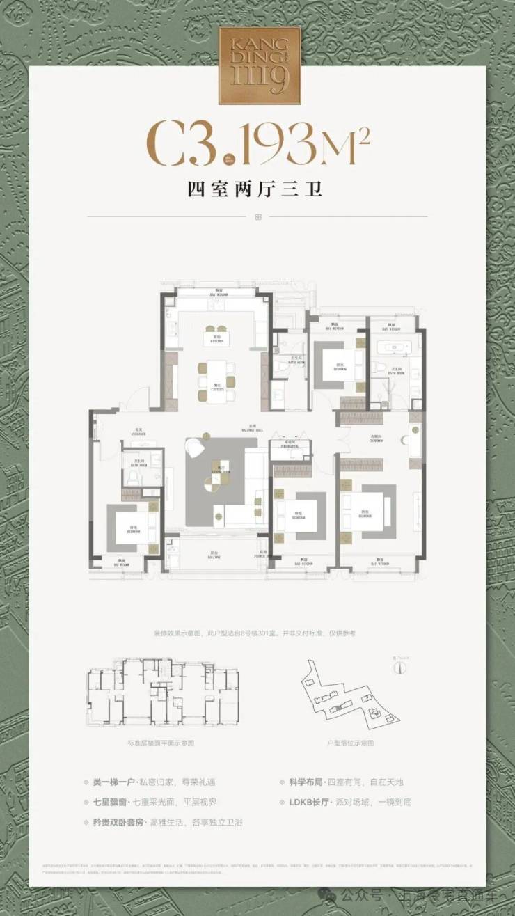 193㎡户型完全就是豪宅的大尺度!保守的说,可以跟市面上几乎所有230+㎡户型对标!
