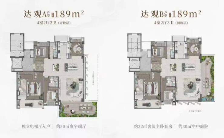 与此同时,东吴原著的墅区洋房,亦是仅占全市新房2%的稀缺资产。约189㎡的四代洋房,以约110%的得房率脱颖而出,私梯入户与空中庭院的配置重新诠释现代洋房的生活体验;而约145㎡的舒居洋房则凭借约14.5米的南向面宽和约96%的高效空间利用率,为居住者提供舒展而从容的生活尺度。