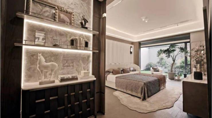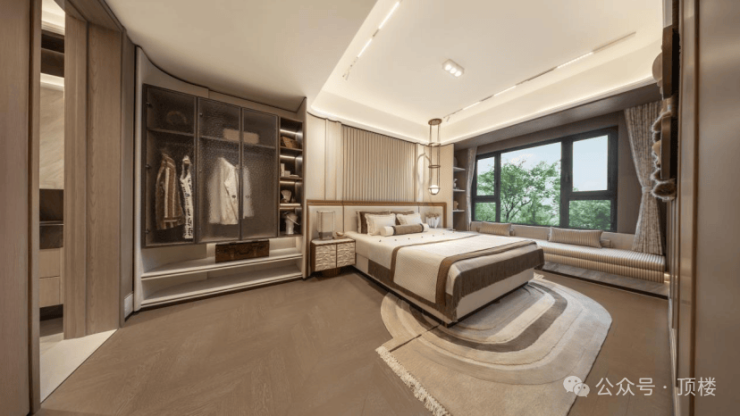 尤其是,精心设置的独立式衣帽间,集收纳、展示共功能为一体,让生活极具仪式感,彰显男女主人的品味与个性。