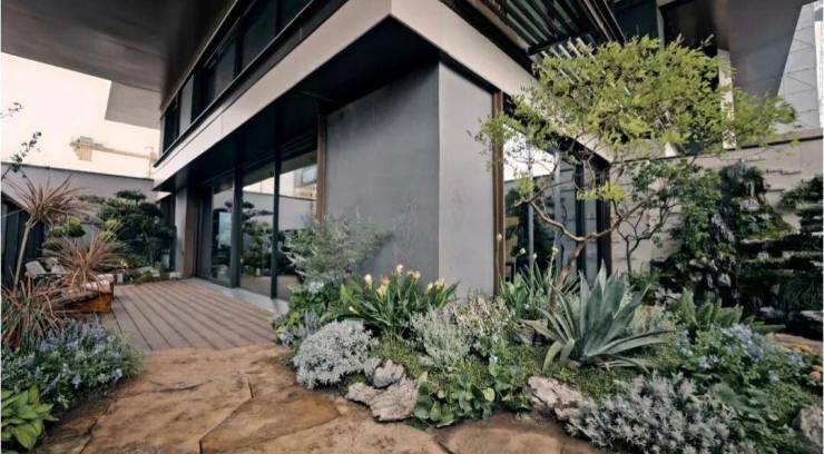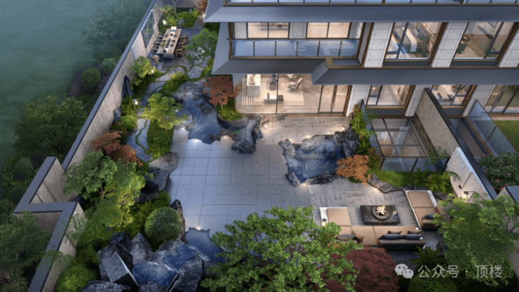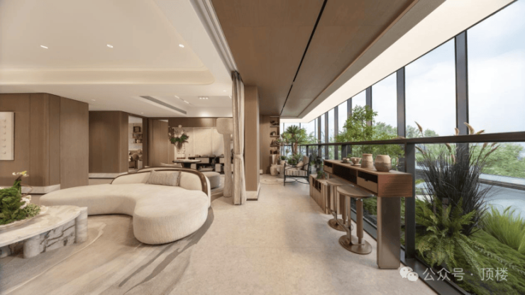 同时,它给业主一种叫做「墅级大平层」的体验。市面上99.9%的大平层,也无法做到别墅的私梯入户与空中庭院的设计。
