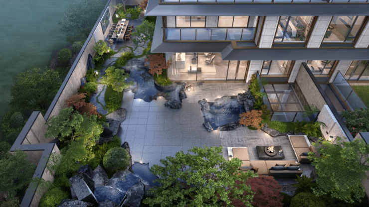 并且还建有2米高实体围墙,既保障绝对隐私,也呼应了苏州世家“居尘而出尘”的隐逸精神。