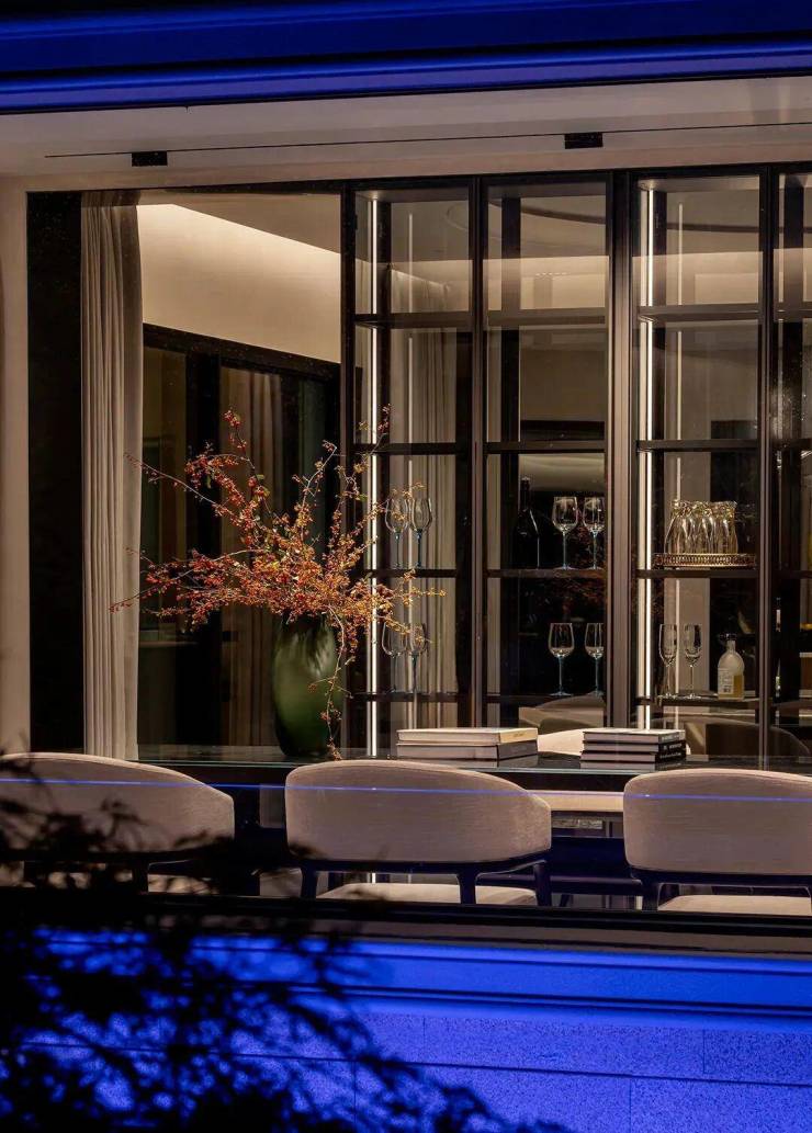 站在落地窗前,你可以看到清晨的第一缕阳光是如何将湖面照应的波光粼粼,也可以看到飞鸟拂过水面,吹进家中的风里都带着微润的水汽和青草香。