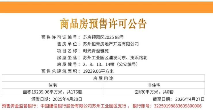 在相隔了4个月后,工业园区青剑湖板块的恒泰象屿时光青澄最新一批次房源取证了!