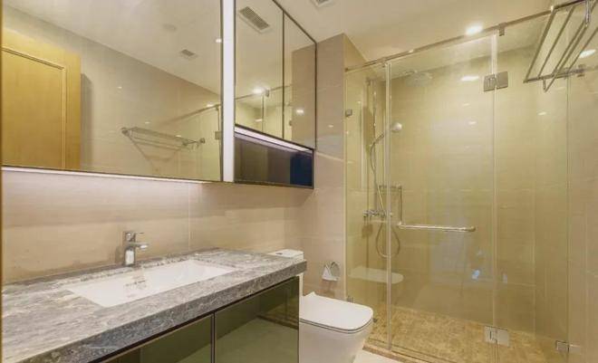 精装品质放在当下依旧不俗,配置三菱中央空调+威能地暖+霍尼韦尔新风系统三大件,厨具是西门子、浴具是杜拉维特等。
