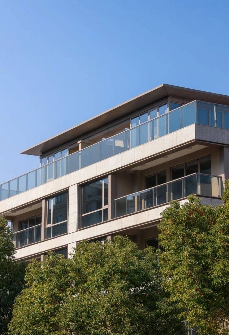 宝格丽现代风格的建筑, 带院带阁楼的通透上下双叠,竟然还是4面全石材干挂+玫瑰金铝板的外立面;近10年叠墅产品里顶级代表作的 西溪云庐,二手成交在10w+/㎡是上下叠双叠铝板立面,未科核心区的 湖境云庐最普通的中叠也是 7w+/㎡的行情,