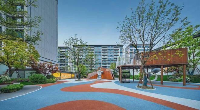 在这里,慢下生活的匆忙步履,让掠过大地的清风,挟带花木的芬芳,愉悦身心。或是父母陪着孩子在儿童乐园里,开启游乐时光,尽情肆意嬉戏玩耍;或是下班后邻里的一场球赛,或是晚饭后园林里怡然漫步,与健跑的友邻微笑致意,一切回归最舒适的模样。