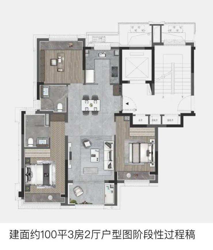 ②建面约103㎡3房户型:
