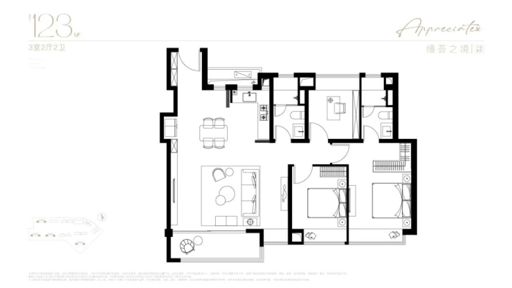 户型设计:双主卧套房,低公摊高得房率,适合改善型需求