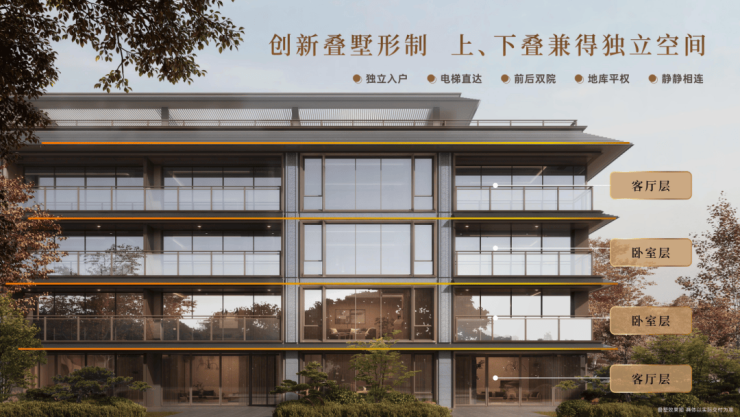 叠加:建面约170-260㎡藏品叠墅,创新思维重塑高端人居范式,动静分区、独立电梯归家、上下同享地库等,突破常规设计。