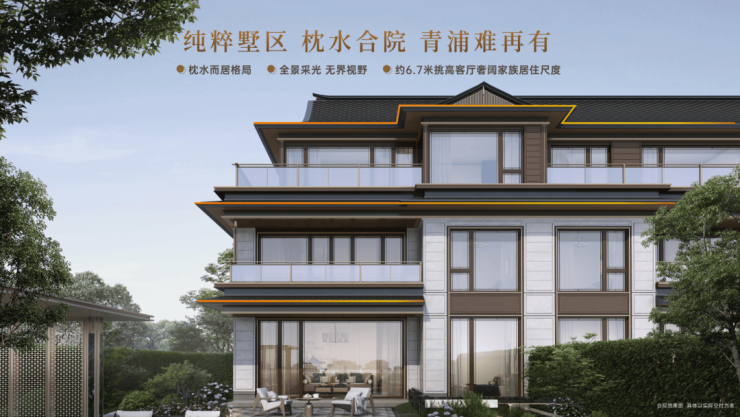 项目坐拥夏浦港与淀浦河“双浦汇流”,享受小陆家嘴同款“玉带环腰”滨水资源,总占地3.2万方,容积率仅约1.0,是青浦新城断供近20年的滨水低密纯墅院落,全盘打造仅140席藏品级创新墅品、滨水合院。