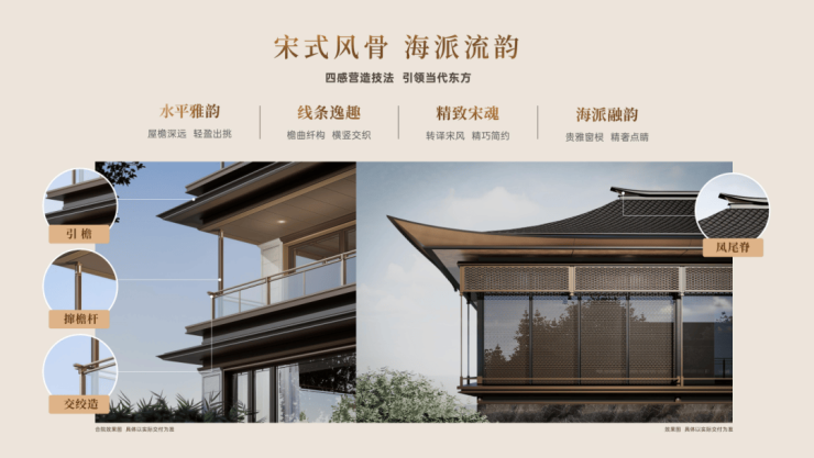 项目立面通过多种新中式元素构筑东方建筑美学,让建筑本身温润厚重从而历久弥新。