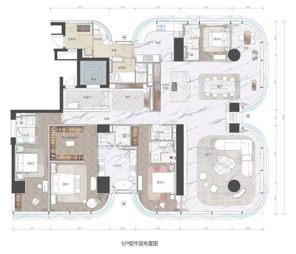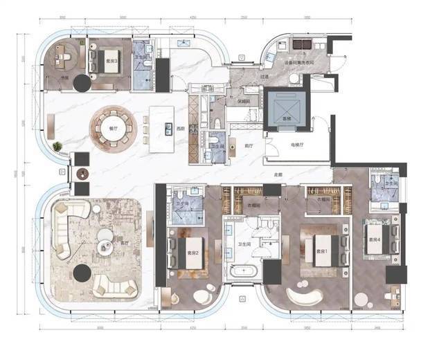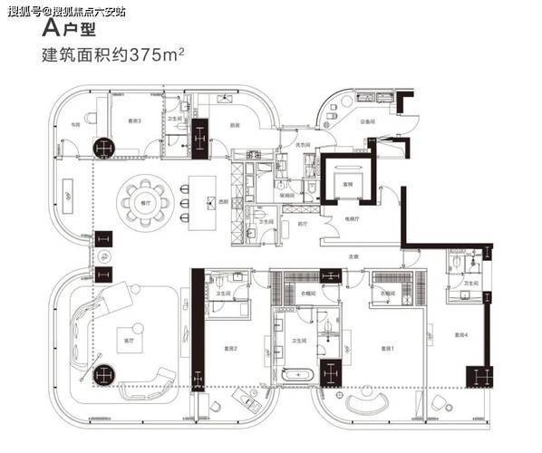 在城市街道中远远望去,建筑给人的感觉是非常的前卫,未来摩登感十足。T1,T6,T7为纯高阶大平层,主力面积为375平方米,层高约3.8米,拥有93%的超高得房率,客厅拥有270度落地窗,城市繁华尽收眼底。全屋进口大理石,全屋智能化系统,餐厅拥有超大岛台,厨房有嘉格纳品牌媲美全球奢宅。