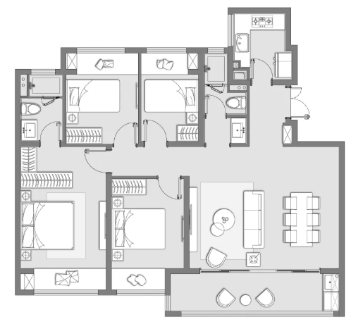 锦绣雅著建筑面积约125㎡四室两厅两卫户型,将四叶草的美好运用到空间布局上,让一幢房子满足不同阶段每一位成员的需求,全面满足居者的多样化产品偏好。