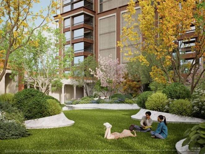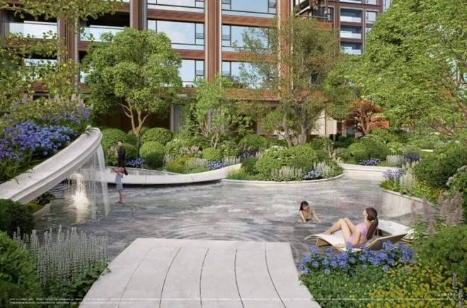 4号楼占据社区约3200平方米的核心园林主轴 ,园林内部精选美国红枫、细叶芒等特色植物,结合水景,在城市核心区构建出一片具备自然野趣与艺术感的园林空间。