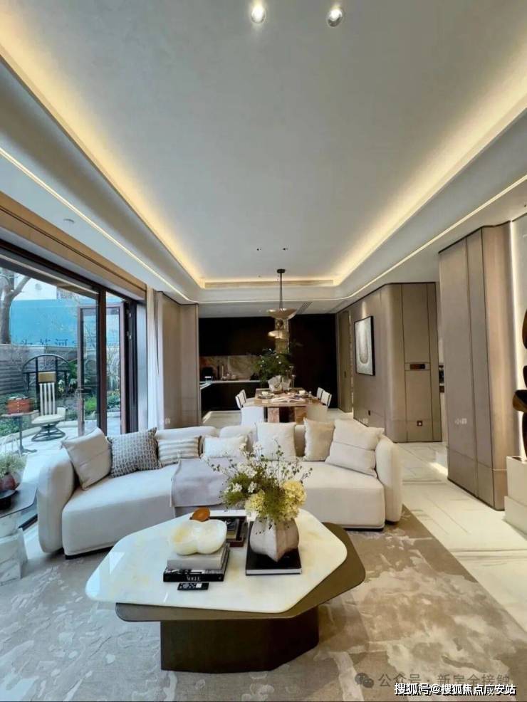 一楼面向庭院全景大玻璃落地窗真正意义上实现借景入室,是空间互融更是诗意盛放,客餐厅等空间集中于南侧于风景的相拥中宽享知味时光,至享生活浪漫。