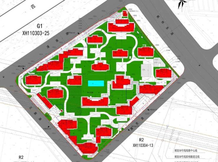 住宅楼幢呈点状布局,部分楼幢的楼间距能够超过40米,小区中央设置有中央花园和户外泳池(水系)。