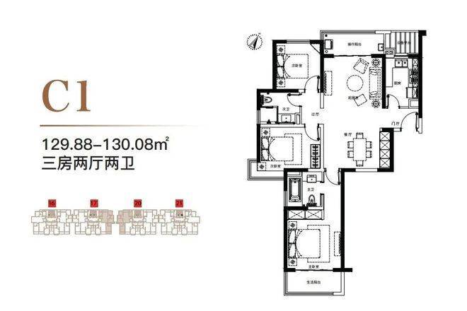 130m²餐客厨阳一体化设计,科学洄游动线,起居生活更方便;