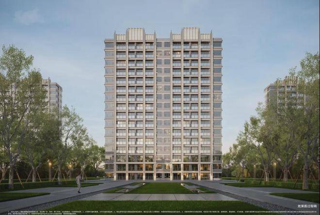 立面也很国际化,采用大面积玻璃+铝条+水包水/水包砂涂料,穿插优雅线条,让这张“脸”看起来更高级。