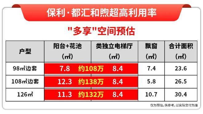 大致计算,98㎡双阳台+花池,可多享约7.8㎡,相当于送了约52万;108㎡三阳台+花池,可多享约12.3㎡,即约82万!