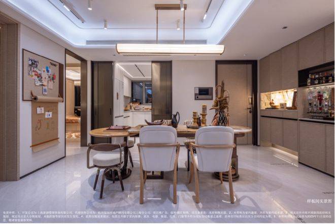 得益于飞机户型设计,无过道浪费,利用率高,项目98/108㎡餐厅比同级户型更加宽阔,可放置5-6人圆桌,大家庭聚餐其乐融融。