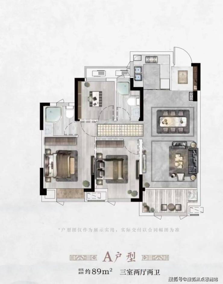 楼面积:72㎡二房两厅一卫,89㎡三室两厅两卫,85㎡三室两厅一卫,