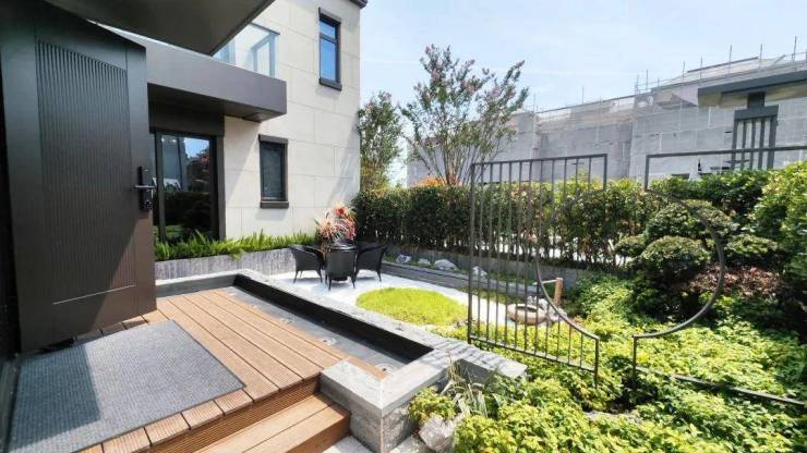 庭前绿地的面积有约40-60㎡,不管侍弄花草、晒晒太阳,抑或叠山理石,都足够了。